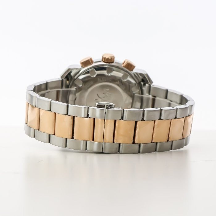 The Optima Swiss Chronograph Watch is a luxurious timepiece crafted from stainless steel with a sleek silver and PVD rose gold case. Featuring a 43mm size and a 13mm thickness, this modern watch includes a variety of useful features such as a central second, date indicator, and luminous indexes. With a Swiss quartz movement and water resistance up to 30m, this stylish accessory is perfect for both casual and formal occasions. The watch comes in its original packaging with a 1-year manufacturer warranty, making it a reliable choice for any fashion-forward individual.